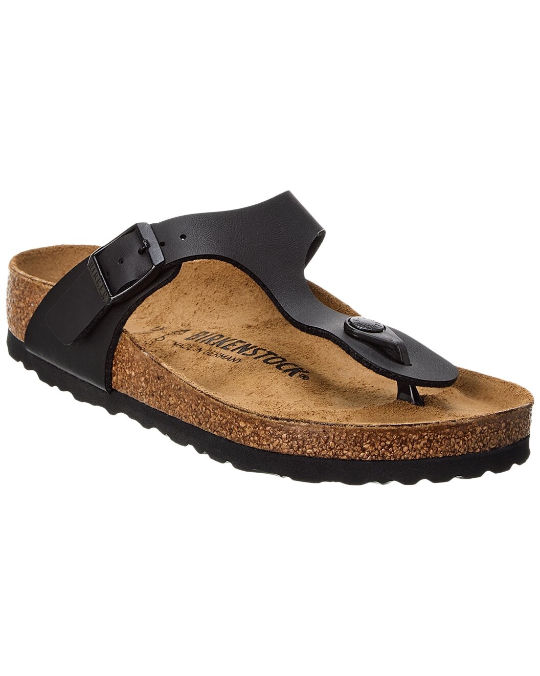 - About the brand: Iconic and sustainable designs that are always on-trend. - Gizeh Birko-Flor Sandal in noir Birko-Flor and black-tone hardware - Original Birkenstock suede-lined natural cork footbed that molds and shapes to your foot, featuring pronounced arch support, deep heel cup, and roomy toe box. - Man-made sole - Made in Germany