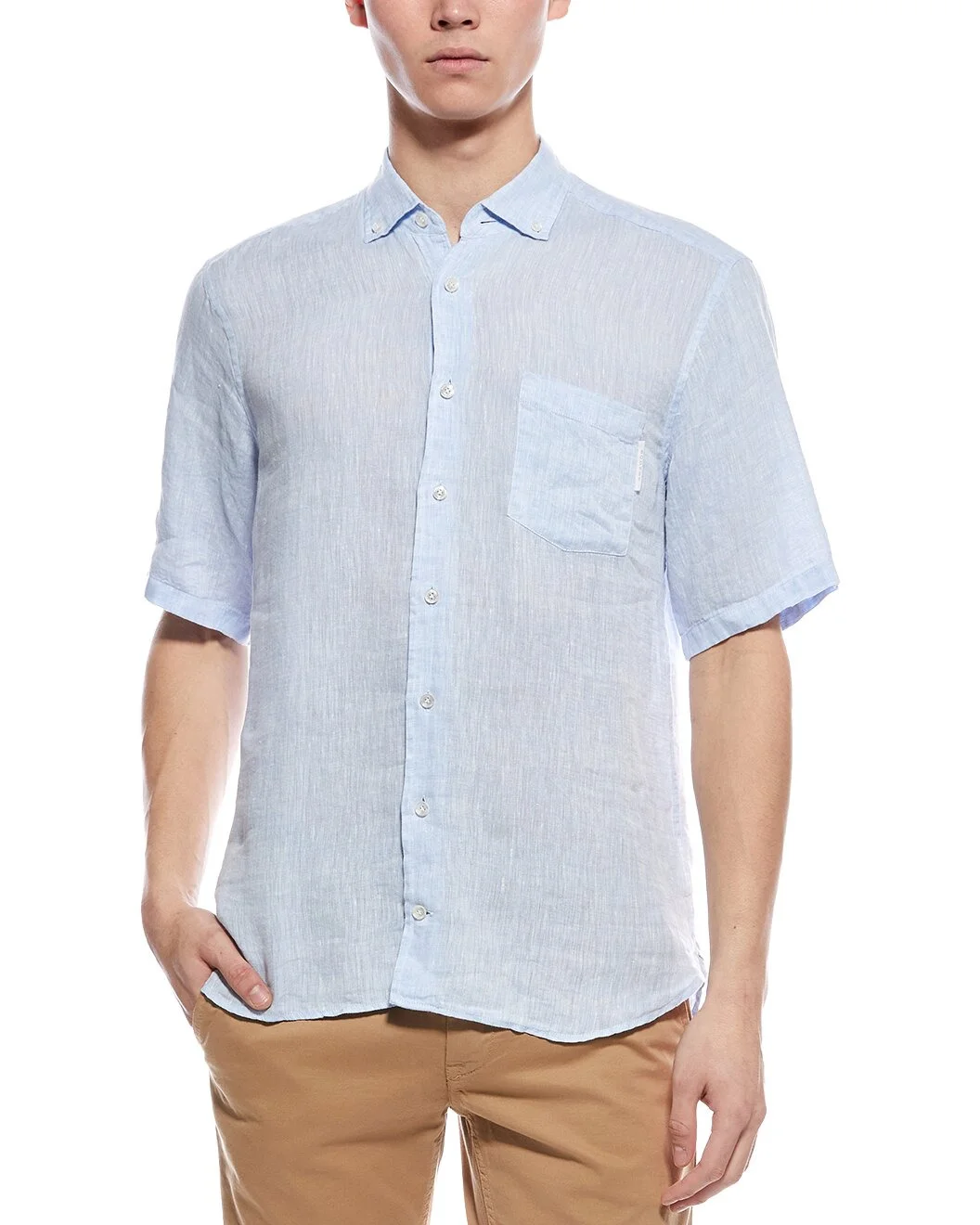 - About the brand: Luxury ski and outerwear with a stylish edge. - Lykos Linen Shirt in light blue with left chest pocket and button-down collar - Approximately 30in from shoulder to hem - Model is 6'2 and is wearing a size medium. Measurements may vary slightly by size. - Button front - 100% linen - Machine wash - Imported - The Men's Size Guide