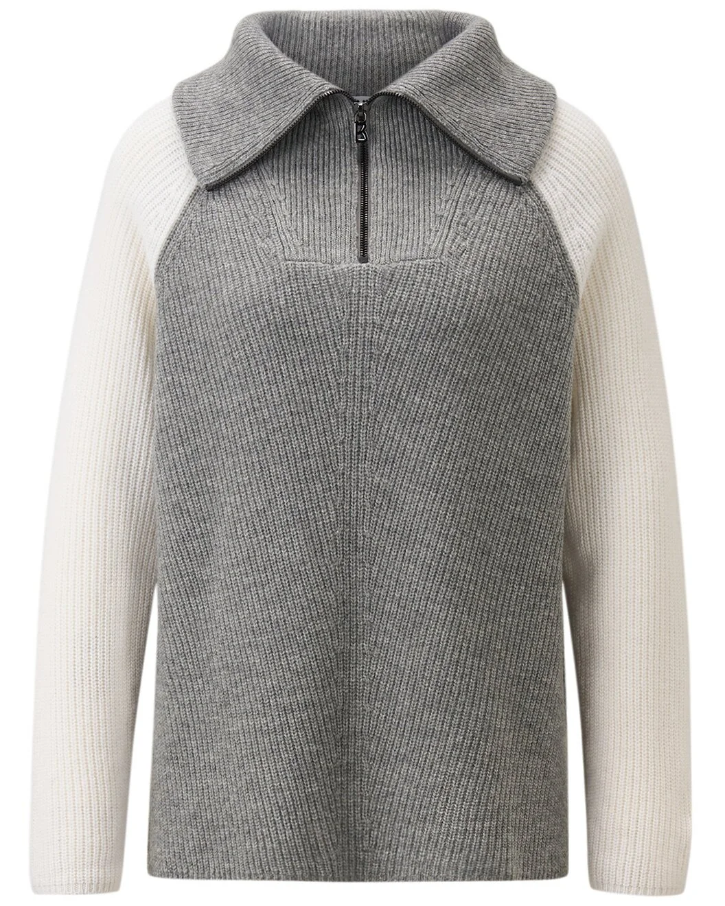 Letizia half-zippered knit sweater in Gray/Cream/Camel