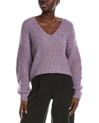 - Color/pattern: viola - Approximately 27in from shoulder to hem - This item tends to run large (based on Member feedback). We recommend sizing down for your best fit. Model is 5'11 and is wearing a size small. Measurements may vary slightly by size. - Design details: oversized shaker rib design, dropped-shoulder sleeves - 68% polyester, 22% polyacrylic, 6% metallized fiber, 4% wool - Hand wash - Imported