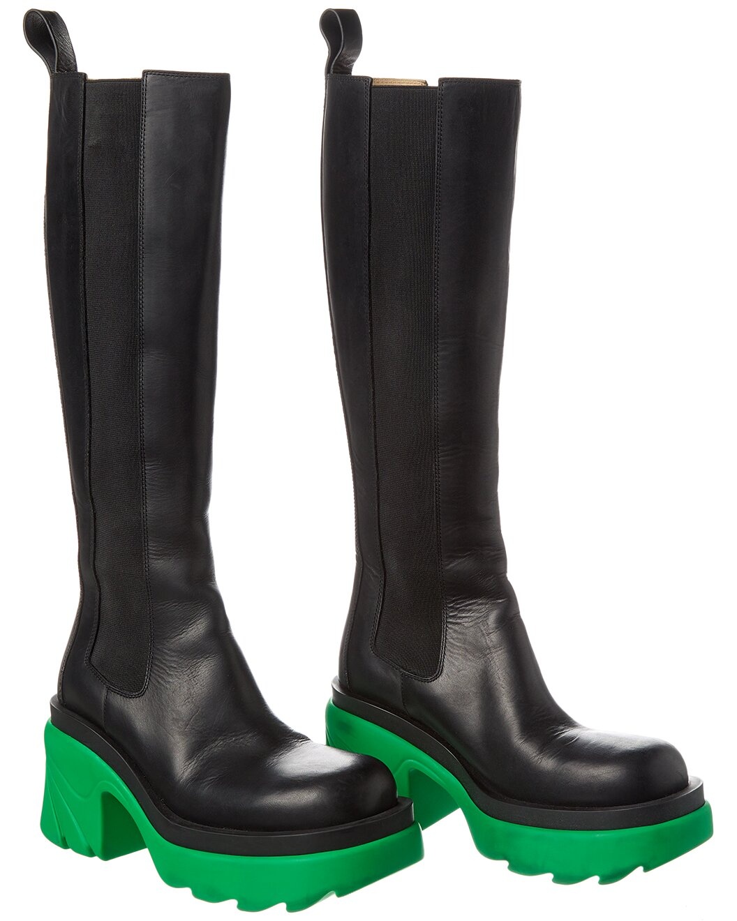 - About the brand: Unsurpassed craftsmanship - and that signature woven leather. - This is an authentic, pre-owned piece. This item may show signs of wear. - For more information on condition, please see our condition guide at the bottom - Please note: Size selections are European. For US conversions, please reference size chart. - Made in Italy - Flash Leather Bootie in black/grass leather with elasticized gores at sides and pull-on tab at back - Lightly padded leather insole - Rubber lug sole - 3.75in heel - 1.5in platform - 12in shaft - 10in boot circumference - Please note: All measurements are approximate and were taken from a size 37; slight variations may occur. - Our products are 100% genuine. In some cases we purchase merchandise from trusted independent suppliers and not directly from the brand owner. In all cases we stand by the authenticity of every product sold on our site. - The Vintage Condition Guide