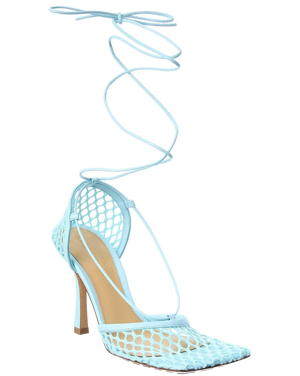 - About the brand: Unsurpassed craftsmanship - and that signature woven leather. - Please note: Size selections are European. For US conversions, please reference size chart. - Stretch Ankle Wrap Leather Sandal in pale blue leather with mesh detail - Lace-up closure - Lightly padded leather insole - Smooth leather sole - 4in heel - Please note: All measurements are approximate and were taken from a size 37; slight variations may occur. - Our products are 100% genuine. In some cases we purchase merchandise from trusted independent suppliers and not directly from the brand owner. In all cases we stand by the authenticity of every product sold on the site.
