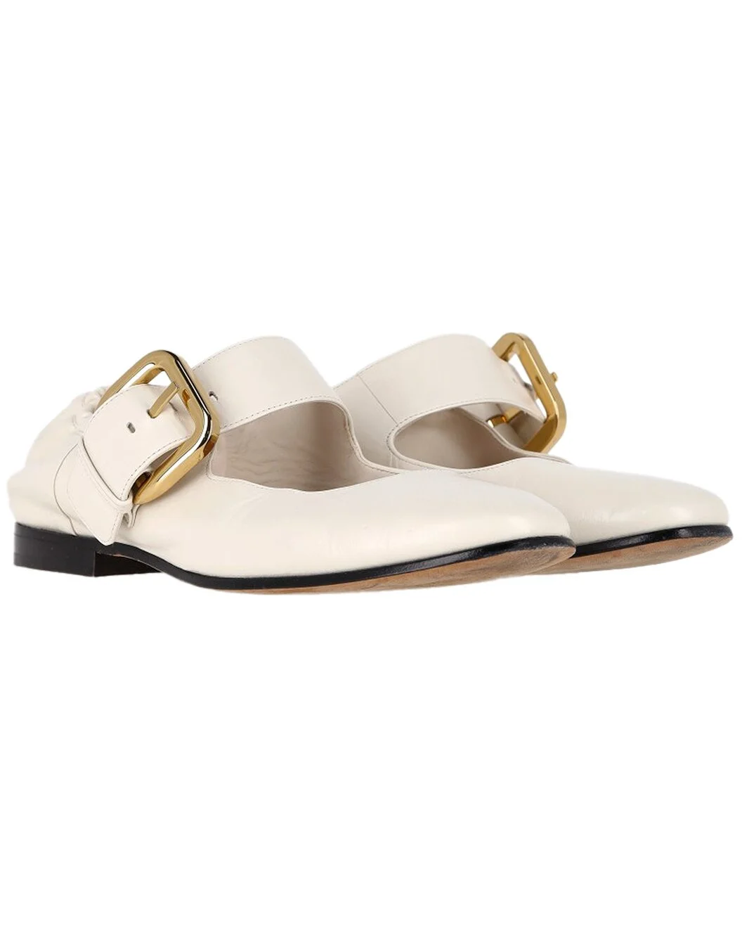 - About the brand: Unsurpassed craftsmanship - and that signature woven leather. - This is an authentic, pre-loved piece. This item is in very good condition and shows light signs of wear. This item shows lightly used but very well maintained, may show minor signs of wear, scratches , worn corners, minor interior wear. - For more information on condition, please see our condition guide at the bottom - Color/material: white leather - Design details: The Bottega Veneta Astaire Mary-Jane Ballerina in cream leather is a modern reinterpretation of a timeless silhouette. Crafted in soft leather with a sleek Mary-Jane strap and finished with a brass-tone buckle, this flat balances understated elegance with signature house detailing. The Intrecciato accent at the backstay adds a quiet nod to Bottega's artisanal legacy, while a lambskin lining ensures all-day comfort. - 11.4in insole length - Available only in Women's size EU 39 - The Pre-Loved Condition Guide - Our products are 100% genuine. In some cases we purchase merchandise from trusted independent suppliers and not directly from the brand owner. In all cases we stand by the authenticity of every product sold on our site.