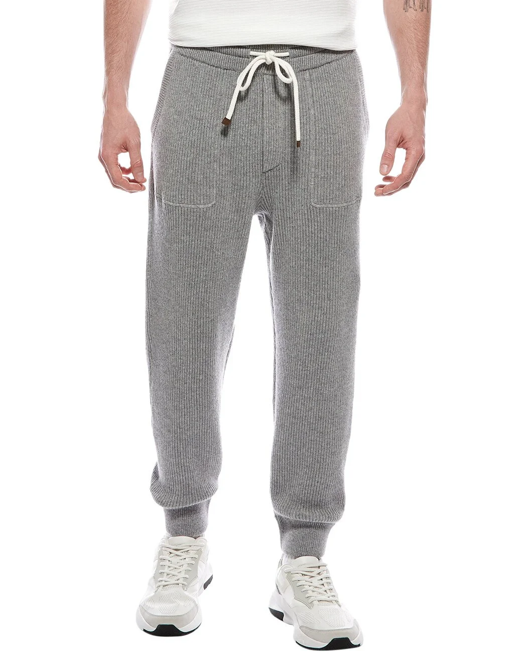 - About the brand: Hailed for its beautifully-crafted cashmere pieces, Brunello Cucinelli was named GQ's Designer of the Year in 2021. With attention to craftsmanship and sustainability, the company exemplifies Italian luxury. - Cashmere Pant in grey with ribbed trim, side pockets, and drawstring waist - Inseam approximately 25in; 14in rise - Model is 6'1 and is wearing a size medium. Measurements may vary slightly by size. - Slip-on styling - 100% cashmere - Hand wash - Made in Italy - Our products are 100% genuine. In some cases we purchase merchandise from trusted independent suppliers and not directly from the brand owner. In all cases we stand by the authenticity of every product sold on our site.