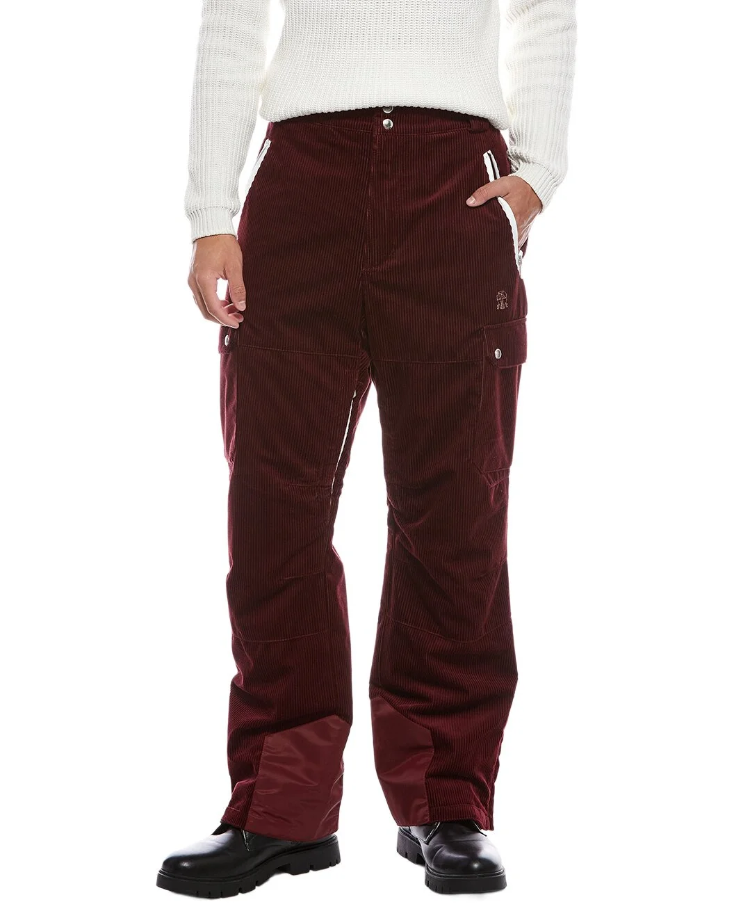 - About the brand: Hailed for its beautifully-crafted cashmere pieces, Brunello Cucinelli was named GQ's Designer of the Year in 2021. With attention to craftsmanship and sustainability, the company exemplifies Italian luxury. - Corduroy Ski Pant in dark red with zippered front pockets, faux back pockets, zippered mesh vents at inner thigh, and zippered ankles - Please note: Size selections are European. For US conversions, please reference the size chart. - Inseam approximately 30in; 13.5in rise - Model is 6'1 and is wearing a size large. Measurements may vary slightly by size. - Zip fly with snap closure - 100% cotton - Combo: 86% polyamide, 8% elastane, 6% polyurethane - Dry clean only - Made in Italy - Our products are 100% genuine. In some cases we purchase merchandise from trusted independent suppliers and not directly from the brand owner. In all cases we stand by the authenticity of every product sold on our site. - WARNING: CA Residents - Prop 65