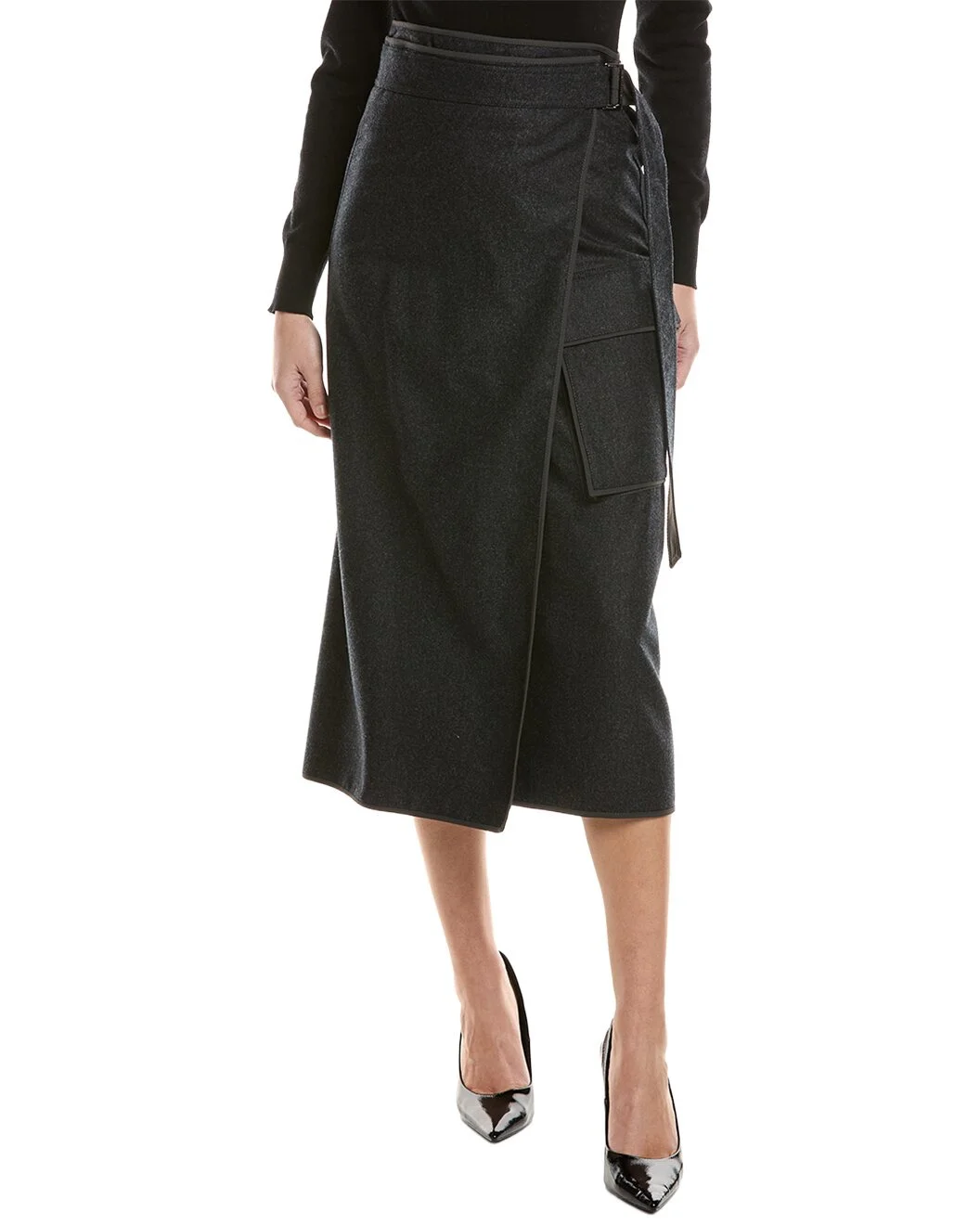 - About the brand: Hailed for its beautifully-crafted cashmere pieces, Brunello Cucinelli was named GQ's Designer of the Year in 2021. With attention to craftsmanship and sustainability, the company exemplifies Italian luxury. - Wool Wrap Skirt in charcoal with cargo pocket - Please note: Size selections are European. For US conversions, please reference the size chart. - Approximately 33in from waist to hem - Model is 5'9 and is wearing a size 42. Measurements may vary slightly by size. - Slide buckle wrap closure - 100% virgin wool - Dry clean only - Made in Italy - Our products are 100% genuine. In some cases we purchase merchandise from trusted independent suppliers and not directly from the brand owner. In all cases we stand by the authenticity of every product sold on our site.