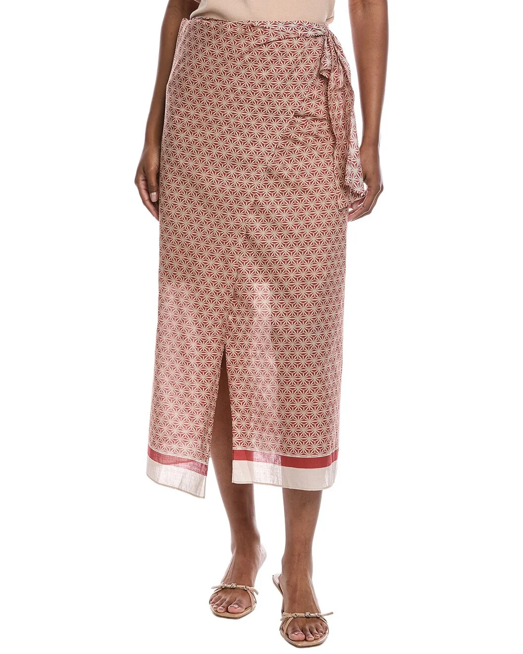- About the brand: Hailed for its beautifully-crafted cashmere pieces, Brunello Cucinelli was named GQ's Designer of the Year in 2021. With attention to craftsmanship and sustainability, the company exemplifies Italian luxury. - Wrap Panel Skirt in red and beige with elasticized waist and wrap panel - Please note: Size selections are European. For US conversions, please reference the size chart. - Approximately 19-33in from waist to hem - Model is 5'9 and is wearing a size 36. Measurements may vary slightly by size. - 100% cotton - Dry clean only - Made in Italy - Our products are 100% genuine. In some cases we purchase merchandise from trusted independent suppliers and not directly from the brand owner. In all cases we stand by the authenticity of every product sold on our site.