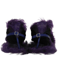 - About the brand: Iconic patterns, materials and silhouettes have made Burberry a coveted luxury staple since 1856. From waterproof, patented gabardine fabric to the unmistakable vintage check and the more modern monogram pattern, Burberry boasts undeniably British influence with timeless appeal. - Please note: Size selections are European. For US conversions, please reference size chart. - Made in Italy - Canvas Sandal in black multicolor cotton and nickel with shearling detail along the edge, detachable fur charm at the heel, nickel hardware, quilted design on the insole, equestrian knight design at the sole, leather strap with buckle closure at vamp - Shearling insole - Leather sole - 3.875in heel - Our products are 100% genuine. In some cases we purchase merchandise from trusted independent suppliers and not directly from the brand owner. In all cases we stand by the authenticity of every product sold on our site.