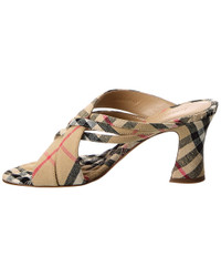 - About the brand: Iconic patterns, materials and silhouettes have made Burberry a coveted luxury staple since 1856. From waterproof, patented gabardine fabric to the unmistakable vintage check and the more modern monogram pattern, Burberry boasts undeniably British influence with timeless appeal. - Please note: Size selections are European. For US conversions, please reference size chart. - Made in Italy - Check Linen Sandal in sand IP check linen with strappy design - Lightly padded leather insole - Smooth leather sole - 3.5in heel - Please note: All measurements are approximate and were taken from a size 37; slight variations may occur. - Our products are 100% genuine. In some cases we purchase merchandise from trusted independent suppliers and not directly from the brand owner. In all cases we stand by the authenticity of every product sold on our site.