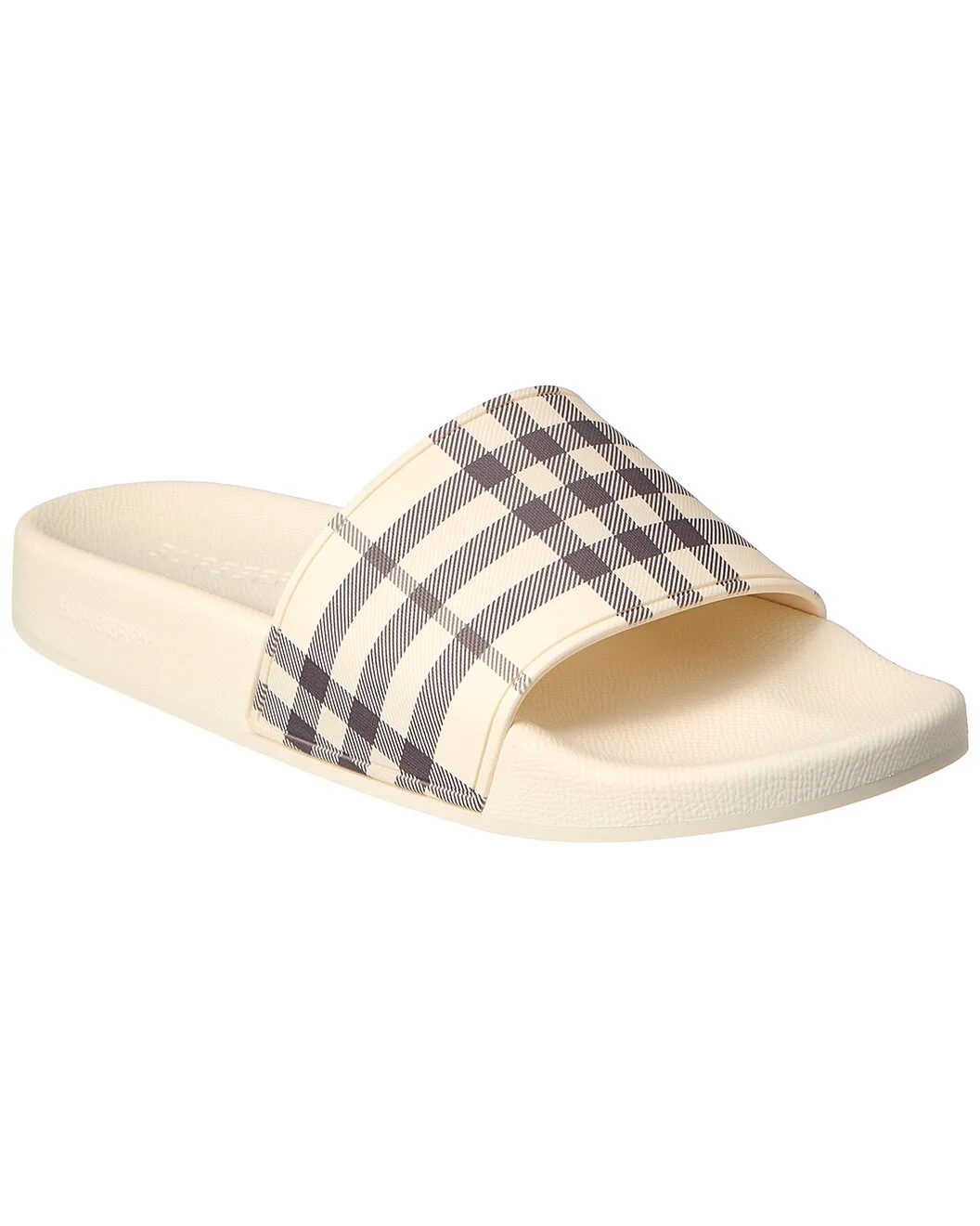 - Guaranteed for Mother's Day. Delivery restrictions apply. - See disclaimer. - About the brand: Iconic patterns, materials and silhouettes have made Burberry a coveted luxury staple since 1856. From waterproof, patented gabardine fabric to the unmistakable vintage check and the more modern monogram pattern, Burberry boasts undeniably British influence with timeless appeal. - Please note: Size selections are European. For US conversions, please reference size chart. - Made in Italy - Check Slide in light beige check polyurethane - Smooth insole - Man-made sole - Our products are 100% genuine. In some cases we purchase merchandise from trusted independent suppliers and not directly from the brand owner. In all cases we stand by the authenticity of every product sold on our site. - WARNING: - CA Residents - Prop 65