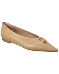 - About the brand: Iconic patterns, materials and silhouettes have made Burberry a coveted luxury staple since 1856. From waterproof, patented gabardine fabric to the unmistakable vintage check and the more modern monogram pattern, Burberry boasts undeniably British influence with timeless appeal. - Please note: Size selections are European. For US conversions, please reference size chart. - Made in Italy - Ezra Leather Flat in chestnut beige leather and gold-tone hardware with monogram accent - Lightly padded leather insole - Smooth leather sole - Our products are 100% genuine. In some cases we purchase merchandise from trusted independent suppliers and not directly from the brand owner. In all cases we stand by the authenticity of every product sold on our site.