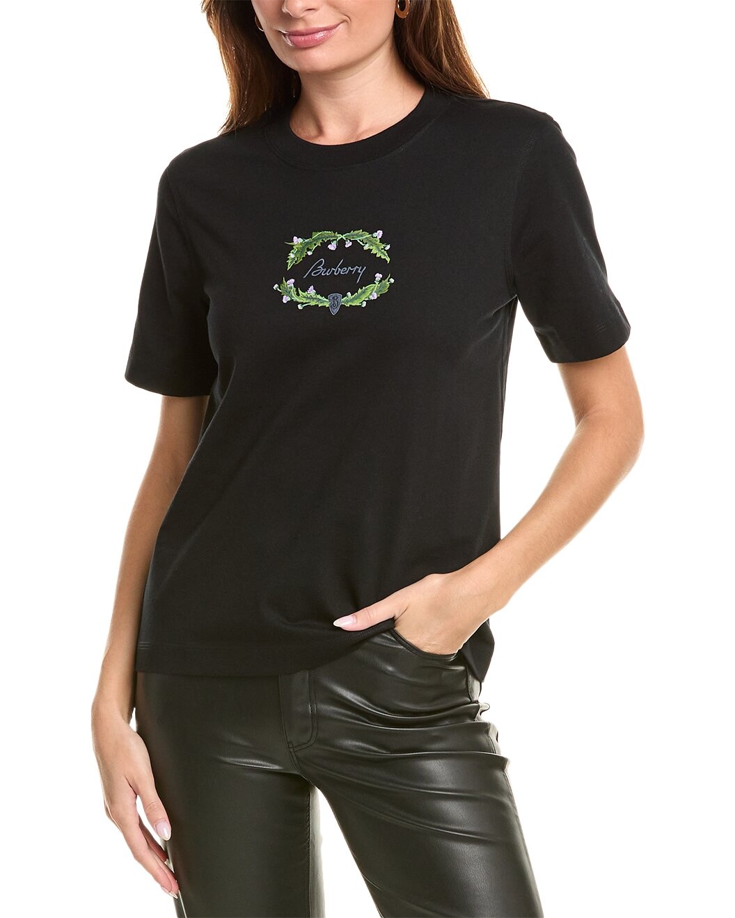 - About the brand: Iconic patterns, materials and silhouettes have made Burberry a coveted luxury staple since 1856. From waterproof, patented gabardine fabric to the unmistakable vintage check and the more modern monogram pattern, Burberry boasts undeniably British influence with timeless appeal. - Thistle Logo T-Shirt in coal with crewneck and logo embroidery - Approximately 25in from shoulder to hem - Model is 5'10 and is wearing a size small. Measurements may vary slightly by size. - 100% cotton - Machine wash - Our products are 100% genuine. In some cases we purchase merchandise from trusted independent suppliers and not directly from the brand owner. In all cases we stand by the authenticity of every product sold on our site.