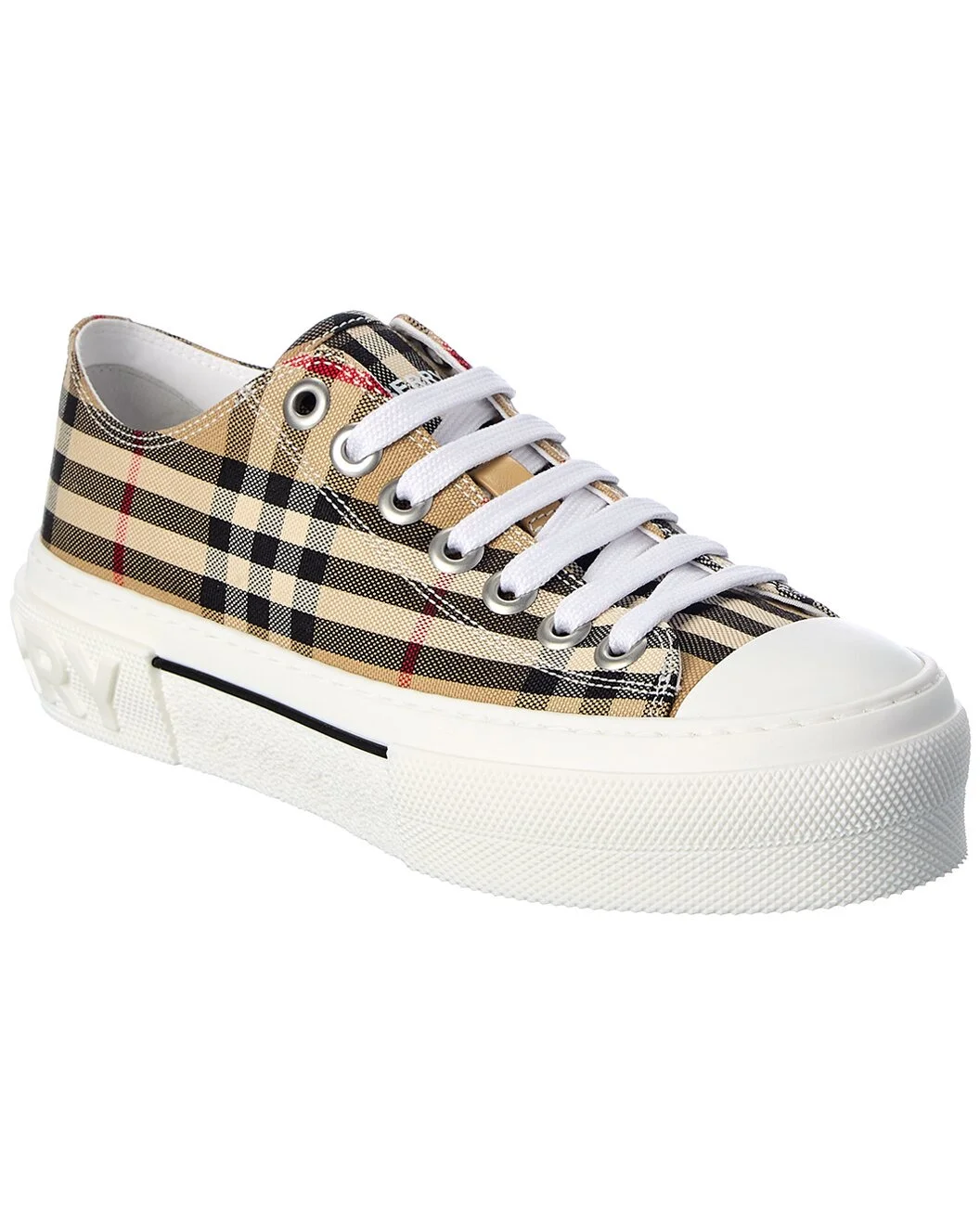- About the brand: Iconic patterns, materials and silhouettes have made Burberry a coveted luxury staple since 1856. From waterproof, patented gabardine fabric to the unmistakable vintage check and the more modern monogram pattern, Burberry boasts undeniably British influence with timeless appeal. - Please note: Size selections are European. For US conversions, please reference size chart. - Vintage Check Canvas Sneaker in brown vintage canvas with silver-tone hardware and platform sole - Lace-up closure - Lightly padded insole - Rubber sole with traction - Our products are 100% genuine. In some cases we purchase merchandise from trusted independent suppliers and not directly from the brand owner. In all cases we stand by the authenticity of every product sold on our site.