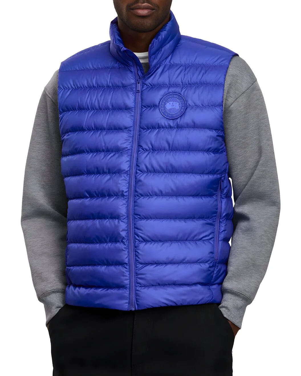 - About the brand: Canada Goose. Function-first apparel with a nod to adventure. - Stratus Down Vest in azurite blue - High CollarPadded DesignSide Zipper PocketsLogo PatchFront Zipper ClosureStratus Vest High Collar Padded DesignIt Is Made Of Quilted Technology FabricLined With Light EiderdownDecorated With The Same Color Brand Logo Patch And Front ZipperStand-Up Collar Design With Pockets And Hem Drawstring. - Zipper closure - Composition: 100% Polyamide - Machine wash - Made in Canada - Our products are 100% genuine. In some cases we purchase merchandise from trusted independent suppliers and not directly from the brand owner. In all cases we stand by the authenticity of every product sold on our site.