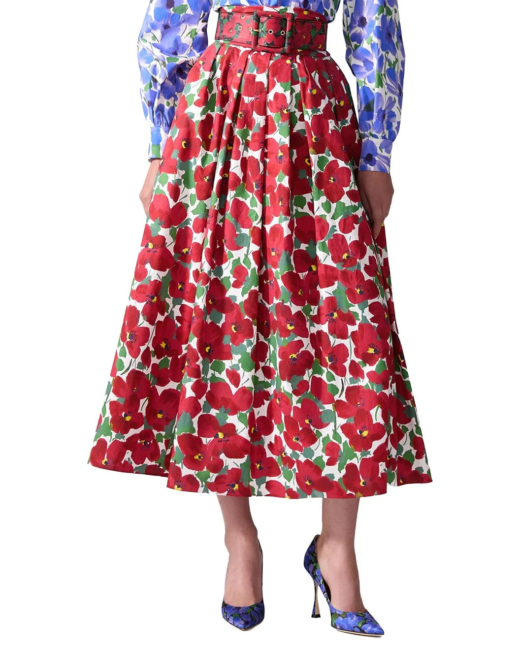 - About the brand: Carolina Herrera. Always elegant. Always polished. - Midi Skirt in Herrera red multicolor - 97% cotton, 3% elastane - Dry clean only - Made in Italy