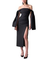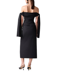 Carolina Herrera Off Shoulder Tie Draped Midi Dress