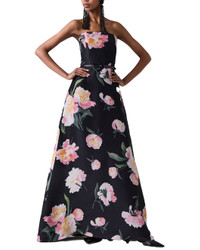 - About the brand: Carolina Herrera. Always elegant. Always polished. - Strapless Silk A-Line Gown in black multicolor - Approximately 64.25in from shoulder to hem - 100% silk - Dry clean only - Made in the USA