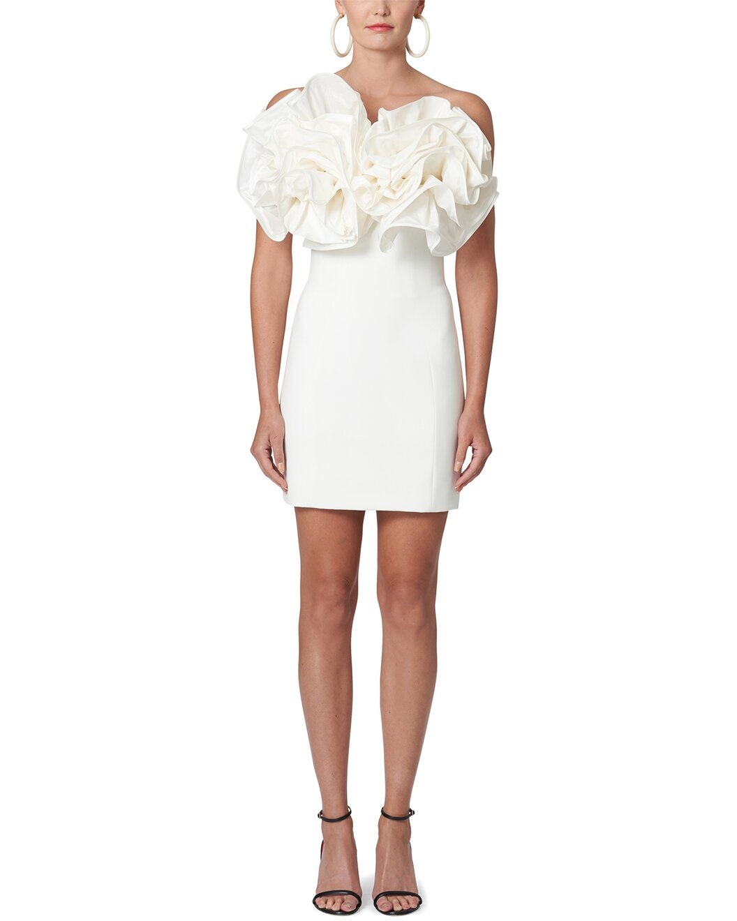 - About the brand: Carolina Herrera. Always elegant. Always polished. - Strapless Silk-Trim Mini Dress in white - Approximately 35.5in from shoulder to hem - Center back zipper closure - 92% PL, 8% PU - Combo: 100% silk - Lining: 100% polyester - Dry clean only - Made in the USA - WARNING: - CA Residents - Prop 65