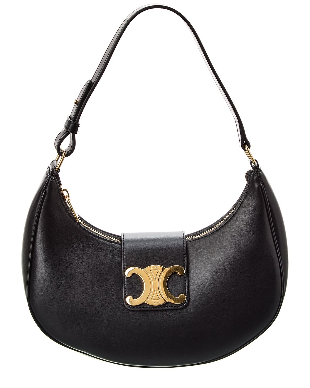 - About the brand: Classic, coveted Parisian chic. - Made in Italy - Ava Triomphe Medium Leather Shoulder Bag in black leather and gold-tone hardware with magnetic fold-over flap and logo accent - Interior design details: suede lining, flat pocket - Measures 10in wide x 7in high x 4in deep - Adjustable shoulder strap drops 9in - Zipper closure - Please note: All measurements were taken by hand and are approximate; slight variations may occur. - Our products are 100% genuine. In some cases we purchase merchandise from trusted independent suppliers and not directly from the brand owner. In all cases we stand by the authenticity of every product sold on our site.