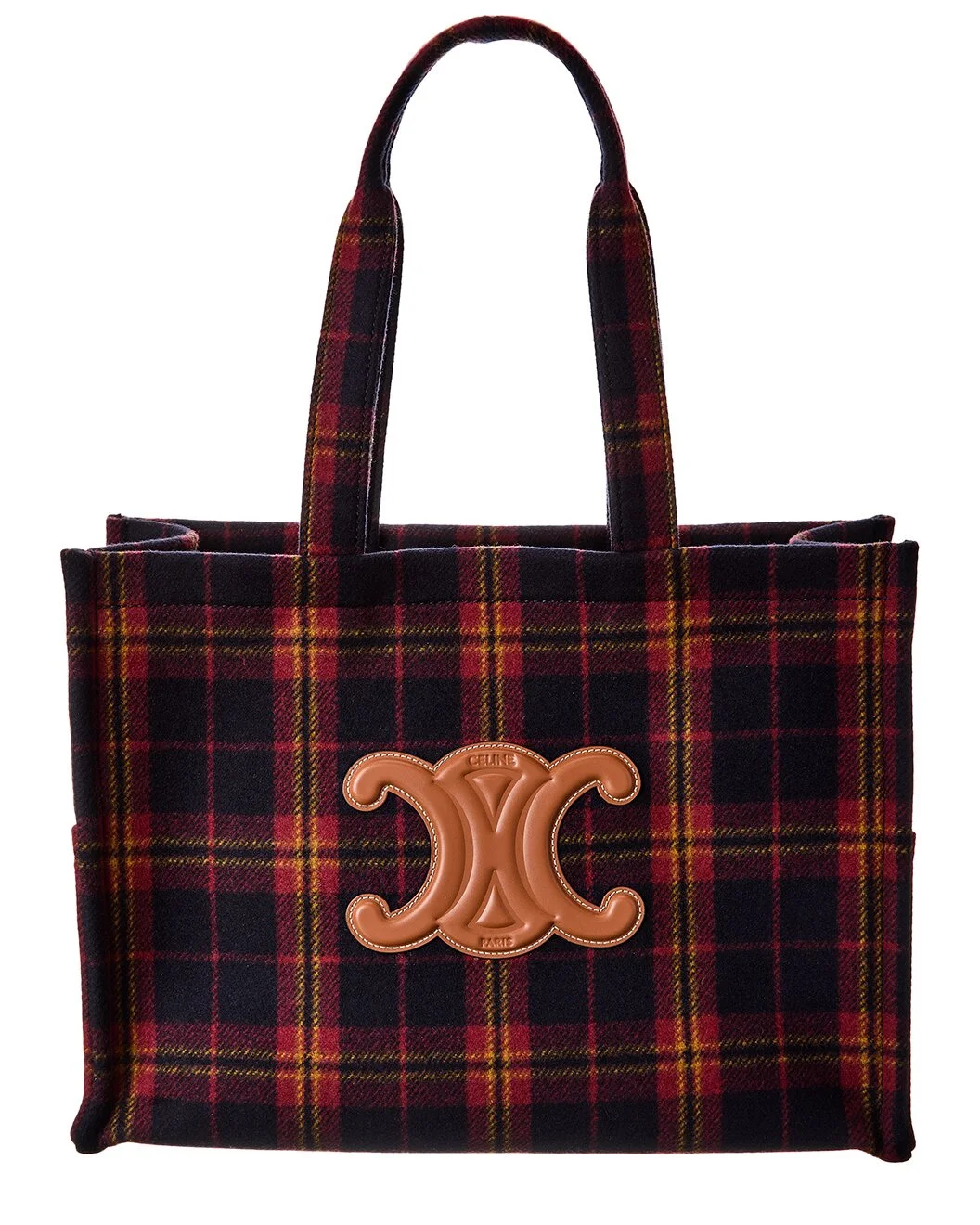 CELINE Cabas Thais Large Tartan & Leather Tote