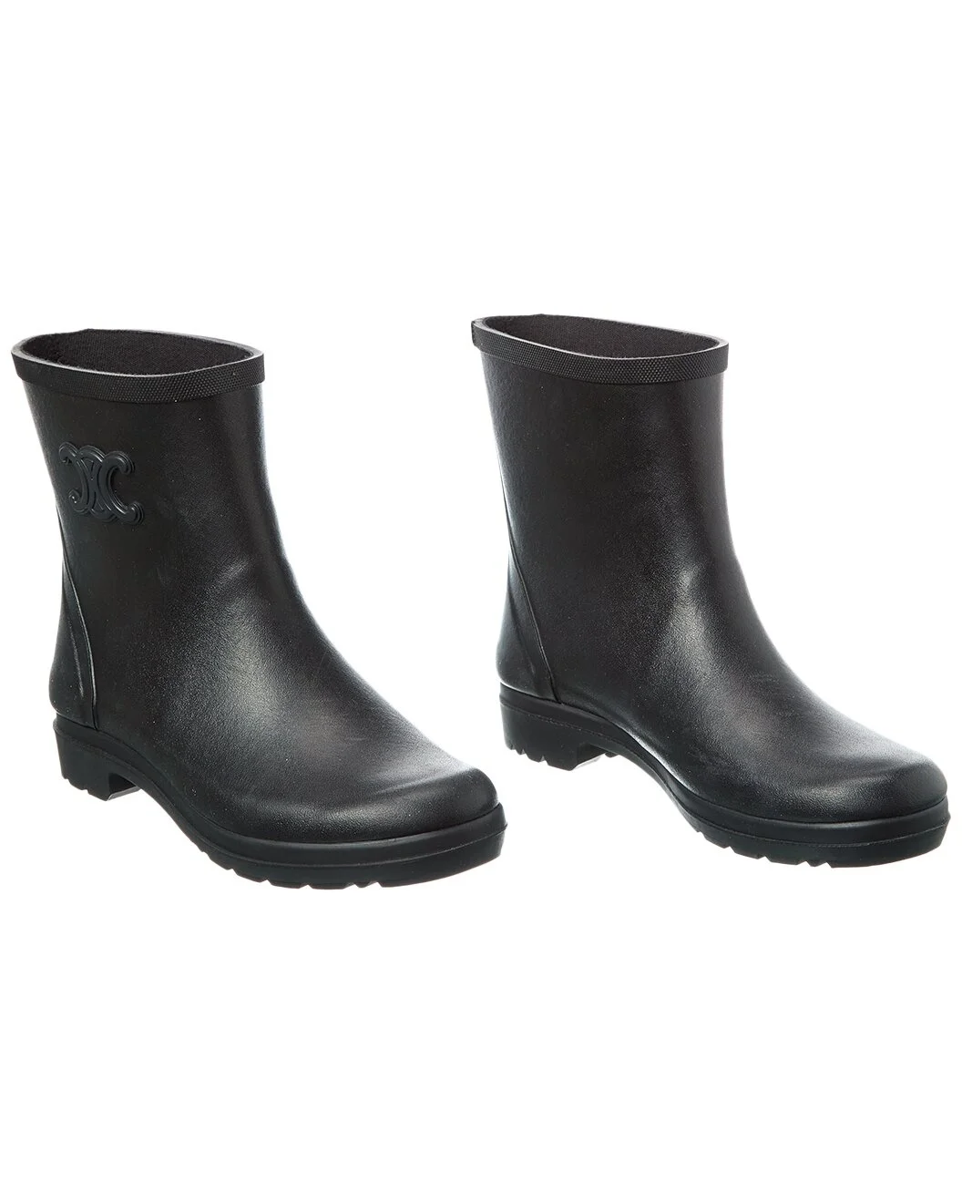 - This is an authentic, pre-loved piece. - This item shows scuff marks on the side. - About the brand: Classic, coveted Parisian chic. - Please note: Size selections are European. For US conversions, please reference size chart. - Made in Italy - Mid Rubber Rain Boot in black rubber with Tromphe rubber patch on the top of the shaft - Slip-on styling - Fabric insole - Rubber sole - 6.6in shaft - 13.5in boot circumference - Please note: All measurements are approximate and were taken from a size 38; slight variations may occur. - The Boot Size Guide - Our products are 100% genuine. In some cases we purchase merchandise from trusted independent suppliers and not directly from the brand owner. In all cases we stand by the authenticity of every product sold on our site.