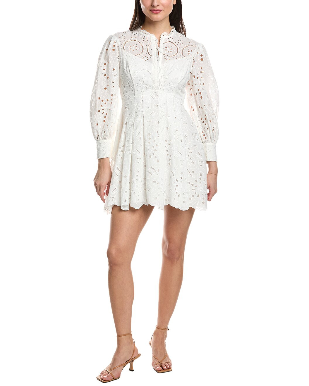 - About the brand: Fun, flirty, feminine fashion. - Franca Mini Dress in white fruition with embroidered design, pleated skirt and button cuffs - Approximately 34in from shoulder to hem - Model is 5'9 and is wearing a size small. Measurements may vary slightly by size. - Button placket - Left side seam zipper closure - 70% cotton, 30% polyester - Hand wash - Imported