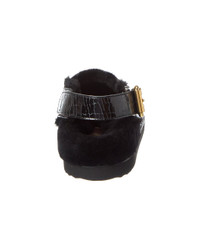 - About the brand: Romantic, cool, and glamorous. - Please note: Size selections are European. For US conversions, please reference size chart. - Made in Spain - Cracked Leather Mule in black cracked leather and gold-tone hardware - Buckle closure - Sheepskin lining - Man-made sole - Our products are 100% genuine. In some cases we purchase merchandise from trusted independent suppliers and not directly from the brand owner. In all cases we stand by the authenticity of every product sold on our site.