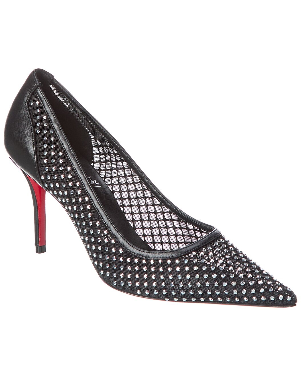 - About the brand: Christian Louboutin. Elegance, technical proficiency, and that signature red sole. - Please note: Size selections are European. For US conversions, please reference size chart. - Based on feedback from Members, this brand typically runs small and narrow. We suggest sizing up a half to full size for most styles. Sizing up won't increase the width of the toe box, however. - Made in Italy - Apostropha 80 Mesh & Leather Pump in black leather and mesh with crystal embellishments - Lightly padded leather insole - Smooth leather sole - 3.5in heel - Please note: All measurements are approximate and were taken from a size 37; slight variations may occur. - Our products are 100% genuine. In some cases we purchase merchandise from trusted independent suppliers and not directly from the brand owner. In all cases we stand by the authenticity of every product sold on our site.
