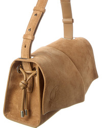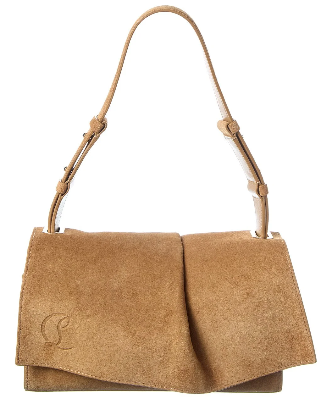 - About the brand: Christian Louboutin. Elegance, technical proficiency, and that signature red sole. - Made in Italy - Baggy Small Suede Shoulder Bag in brown suede and gold-tone hardware - Interior design details: drawstring interior, zippered pocket - Measures 9.8in wide x 6.7in high x 4in deep - Adjustable shoulder strap drops 11in - Fold-over flap - Please note: All measurements were taken by hand and are approximate; slight variations may occur. - Our products are 100% genuine. In some cases we purchase merchandise from trusted independent suppliers and not directly from the brand owner. In all cases we stand by the authenticity of every product sold on our site.