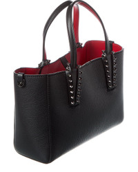 - About the brand: Christian Louboutin. Elegance, technical proficiency, and that signature red sole. - Made in Italy - Cabata E/W Mini Leather Tote in black leather and gunmetal-tone hardware with tonal spike embellishments - Interior design details: signature red leather lining - Measures 9.5in wide x 6.5in high x 3in deep - Top handles drop 4in - Adjustable and removable shoulder strap drops 20in - Open top with toggle closure - Please note: All measurements were taken by hand and are approximate; slight variations may occur. - Our products are 100% genuine. In some cases we purchase merchandise from trusted independent suppliers and not directly from the brand owner. In all cases we stand by the authenticity of every product sold on our site.