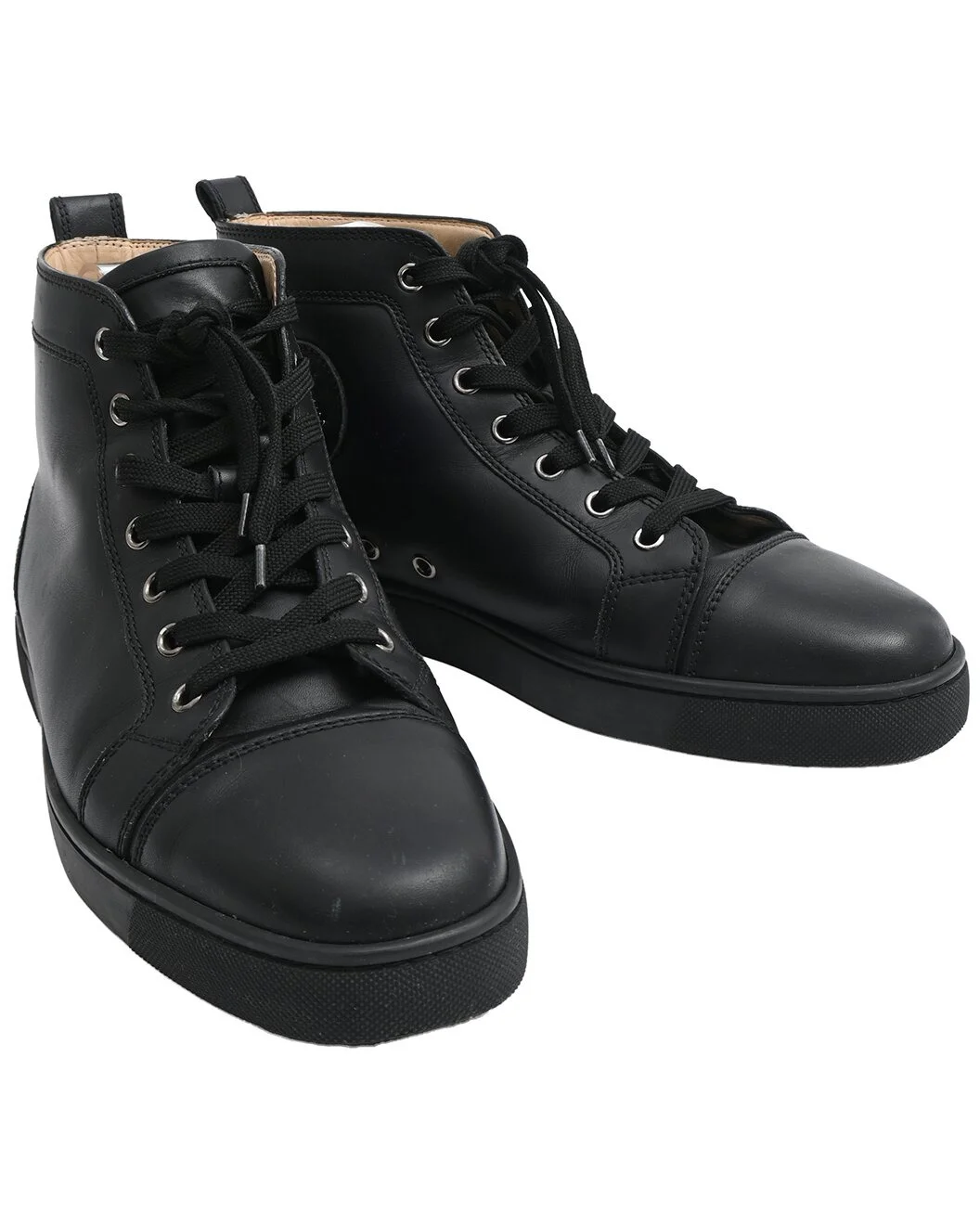 - About the brand: Christian Louboutin. Elegance, technical proficiency, and that signature red sole. - This is an authentic, pre-loved piece. This item is in very good condition and shows light signs of wear. This item shows lightly used but very well maintained, may show minor signs of wear, scratches , worn corners, minor interior wear. - For more information on condition, please see our condition guide at the bottom - Color/material: black calfskin leather - Design details: The Christian Louboutin Louis High-Top Sneakers in Black Calf Leather exude sleek sophistication with their flawless craftsmanship and signature red sole. Designed for the modern man, they bring a luxurious edge to both casual and smart streetwear looks. Style tip: pair them with tailored black jeans and a crisp white shirt for an effortlessly refined, statement-making ensemble. - 0.98in heel - 10.4in insole length - Available only in Men's size EU 40.5 - The Pre-Loved Condition Guide - Our products are 100% genuine. In some cases we purchase merchandise from trusted independent suppliers and not directly from the brand owner. In all cases we stand by the authenticity of every product sold on our site.