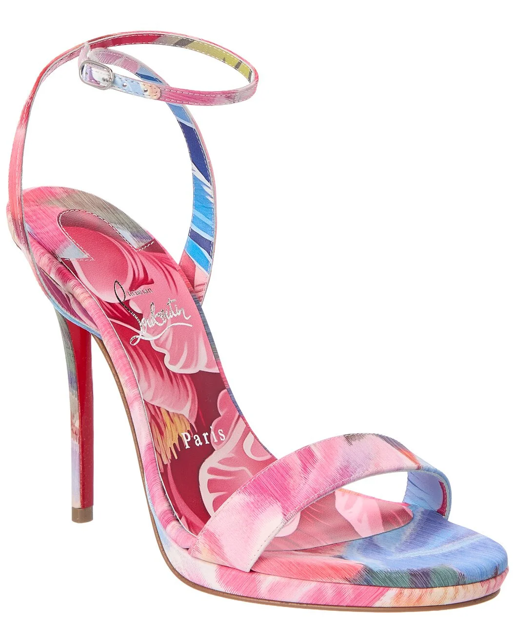 - About the brand: Christian Louboutin. Elegance, technical proficiency, and that signature red sole. - Please note: Size selections are European. For US conversions, please reference size chart. - Based on feedback from Members, this brand typically runs small and narrow. We suggest sizing up a half to full size for most styles. Sizing up won't increase the width of the toe box, however. - Made in Italy - Miss Z Queen 100 Canvas Sandal in multicolor printed fabric and silver-tone hardware - Adjustable ankle strap with buckle closure - Lightly padded leather insole - Smooth leather sole - 4in heel - Please note: All measurements are approximate and were taken from a size 36; slight variations may occur. - Our products are 100% genuine. In some cases we purchase merchandise from trusted independent suppliers and not directly from the brand owner. In all cases we stand by the authenticity of every product sold on our site.