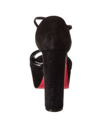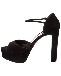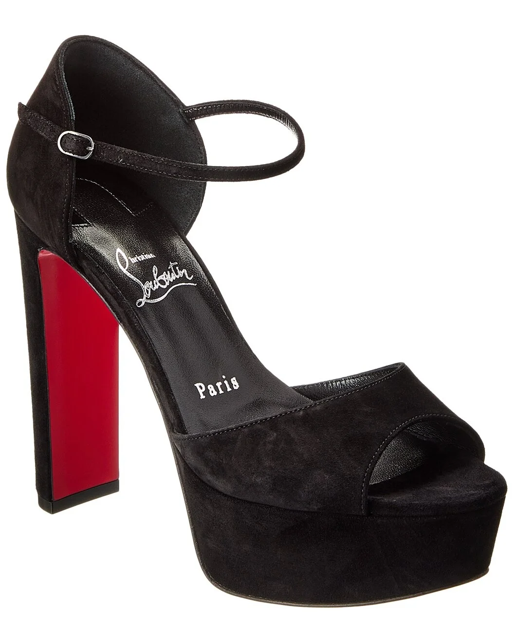 - About the brand: Christian Louboutin. Elegance, technical proficiency, and that signature red sole. - Please note: Size selections are European. For US conversions, please reference size chart. - Based on feedback from Members, this brand typically runs small and narrow. We suggest sizing up a half to full size for most styles. Sizing up won't increase the width of the toe box, however. - Made in Italy - Sandaloo 130 Suede Platform Sandal in black suede with silver-tone hardware and peep toe - Adjustable ankle strap with buckle closure - Lightly padded leather insole - Smooth leather sole - 5in heel - 1.5in platform - Please note: All measurements are approximate and were taken from a size 37; slight variations may occur. - Our products are 100% genuine. In some cases we purchase merchandise from trusted independent suppliers and not directly from the brand owner. In all cases we stand by the authenticity of every product sold on our site.
