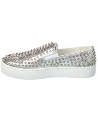 - About the brand: Christian Louboutin. Elegance, technical proficiency, and that signature red sole. - Please note: Size selections are European. For US conversions, please reference size chart. - Based on feedback from Members, this brand typically runs small and narrow. We suggest sizing up a half to full size for most styles. Sizing up won't increase the width of the toe box, however. - Made in Italy - Spikeboat Leather Slip-On Sneaker in silver leather with silver-tone spikes - Lightly padded leather insole - Rubber sole with traction - 1.5in platform - Our products are 100% genuine. In some cases we purchase merchandise from trusted independent suppliers and not directly from the brand owner. In all cases we stand by the authenticity of every product sold on our site.