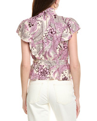 - About the brand: A relaxed, sensible approach to style with a touch of intelligence and unique charm. - Brynn Ruffle Wrap Top in pink multi with pleated crossover front with cutout detail, elastic waist with self-tie sash and ruffle trim - Approximately 21in from shoulder to hem - This item tends to run small (based on Member feedback). We recommend sizing up for your best fit. Model is 5'10 and is wearing a size 4. Measurements may vary slightly by size. - Keyhole button closure - 100% cotton - Dry clean only - Imported