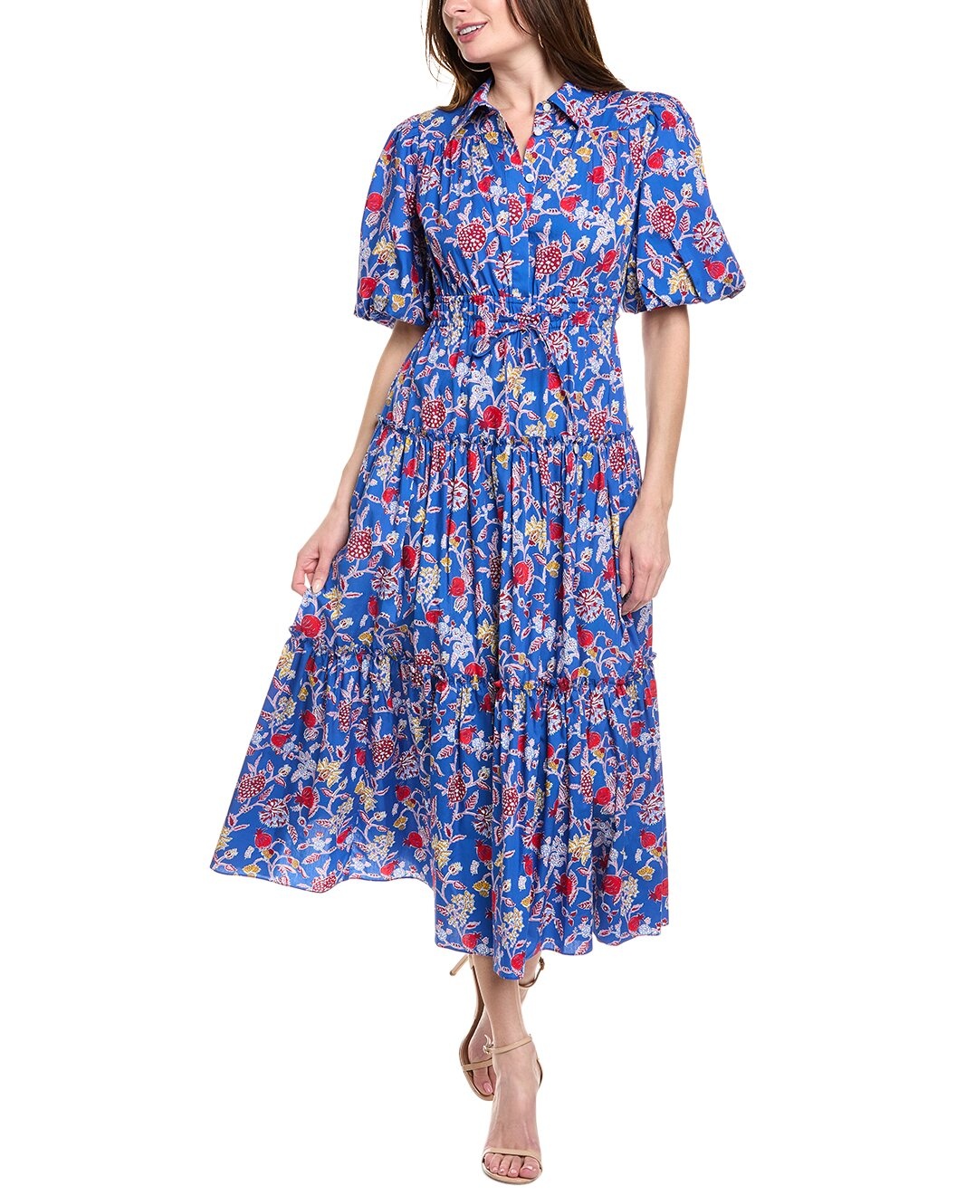 - About the brand: A relaxed, sensible approach to style with a touch of intelligence and unique charm. - Dahlia Shirtdress in blue multicolor with balloon sleeves, elastic waist - Approximately 52in from shoulder to hem - This item tends to run small (based on Member feedback). We recommend sizing up for your best fit. Model is 5'10 and is wearing a size 4. Measurements may vary slightly by size. - Button placket - 100% cotton - Dry clean only - Imported