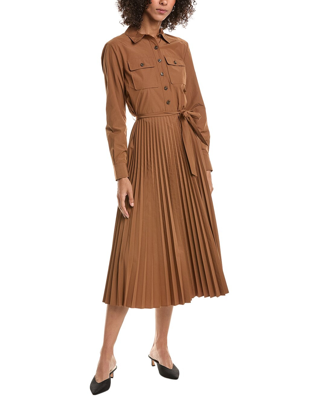 - About the brand: A relaxed, sensible approach to style with a touch of intelligence and unique charm. - Kenza Pleated Midi Dress in dark mocha with dual chest pockets and tie belt at waist - Approximately 49.5in from shoulder to hem - This item tends to run small (based on Member feedback). We recommend sizing up for your best fit. Model is 5'10 and is wearing a size 2. Measurements may vary slightly by size. - Button placket - 58% polyester, 42% cotton - Dry clean only - Imported