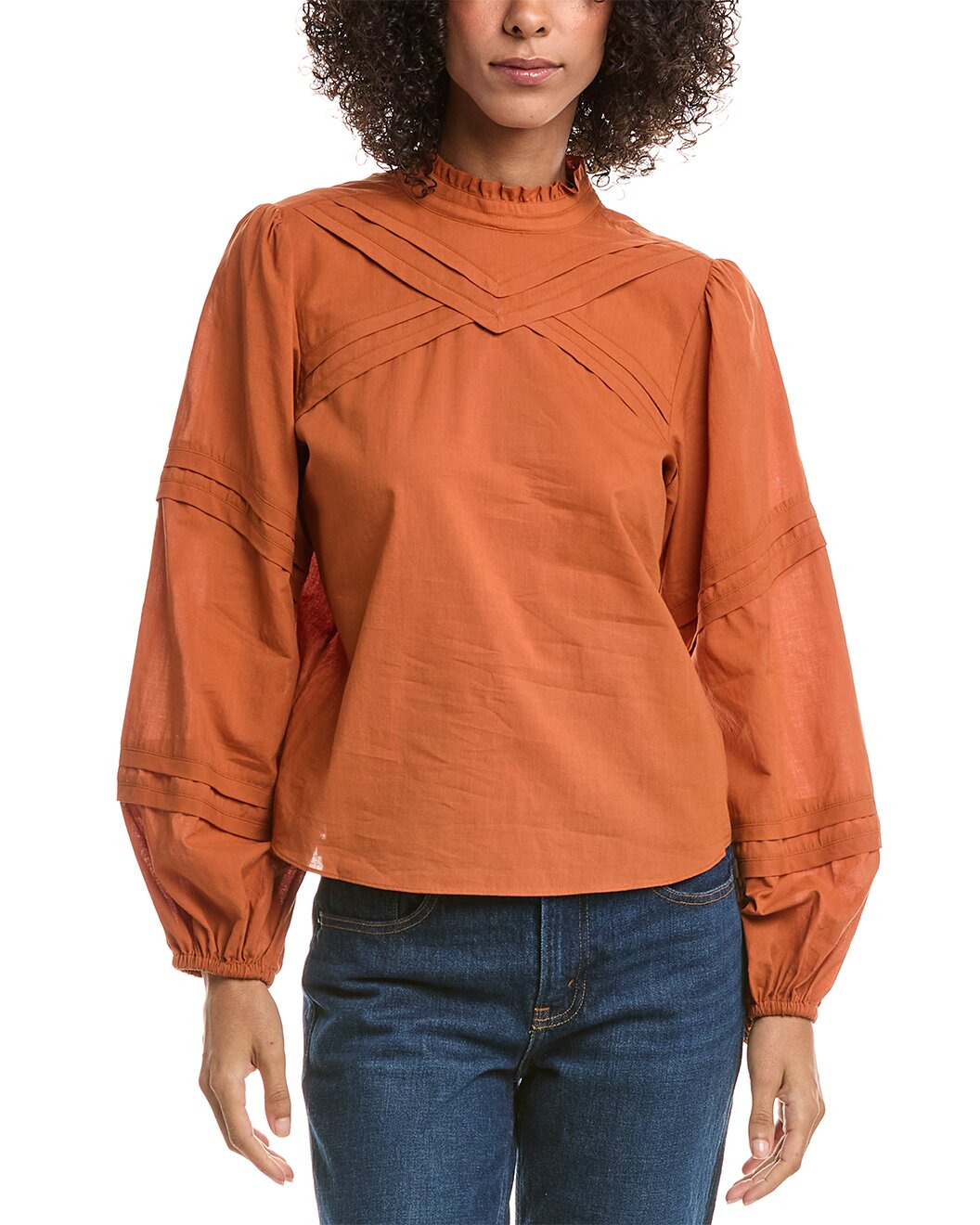 - About the brand: A relaxed, sensible approach to style with a touch of intelligence and unique charm. - Marlowe Long Sleeve Blouse in cinnamon with mock neck, balloon sleeves, elasticized cuffs, and pintuck details - Approximately 23.5in from shoulder to hem - This item tends to run small (based on Member feedback). We recommend sizing up for your best fit. Model is 5'10 and is wearing a size 4. Measurements may vary slightly by size. - Keyhole button closure - 95% Cotton, 5% Metallic Fibers - Dry clean only - Imported