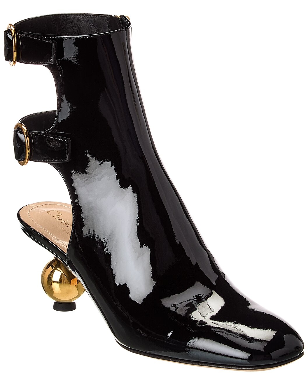 - About the brand: Elegant and timeless French luxury. - Please note: Size selections are European. For US conversions, please reference size chart. - Made in Italy - D-Idole Patent Bootie in black patent leather and gold-tone hardware with buckle straps and ball heel - Inner side zip-up closure - Lightly padded leather insole - Smooth leather sole - 2.5in heel - 6in shaft - 10in boot circumference - Please note: All measurements are approximate and were taken from a size 37; slight variations may occur. - The Boot Size Guide - Our products are 100% genuine. In some cases we purchase merchandise from trusted independent suppliers and not directly from the brand owner. In all cases we stand by the authenticity of every product sold on our site.