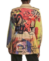 Graffiti-print gabardine trench coat