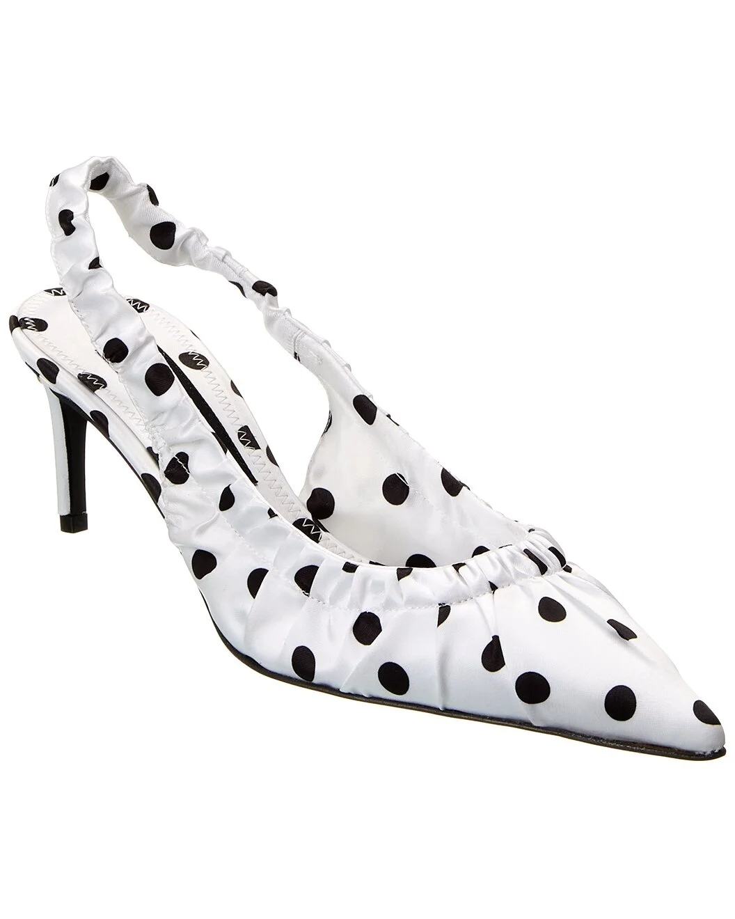- About the brand: Inspired and versatile pieces infused with Italian culture. - Please note: Size selections are European. For US conversions, please reference size chart. - Based on feedback from Members, this brand typically runs small. We suggest sizing up a half size for most styles. - Made in Italy - Satin Slingback Pump in white polka dot satin and gold-tone hardware with logo accent and pointy-toe - Lightly padded leather insole - Smooth leather sole - 2.5in heel - Please note: All measurements are approximate and were taken from a size 37; slight variations may occur. - Our products are 100% genuine. In some cases we purchase merchandise from trusted independent suppliers and not directly from the brand owner. In all cases we stand by the authenticity of every product sold on our site.