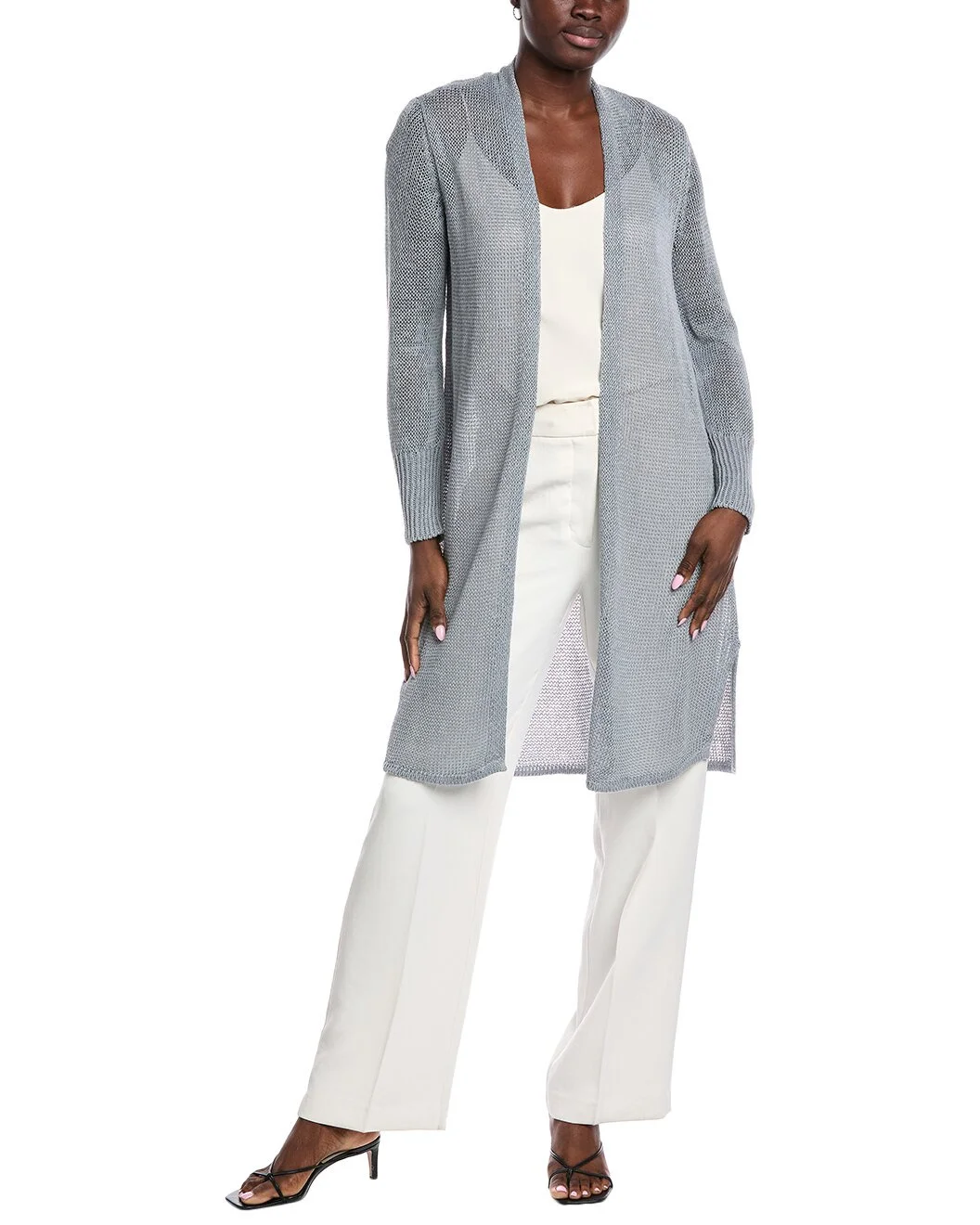- About the brand: Versatile minimalist shapes, ethically made. - Long Linen-Blend Cardigan in greystone with side slits at hem - Approximately 37in from shoulder to hem - This item tends to run large (based on Member feedback). We recommend sizing down for your best fit. Model is 5'10.5 and is wearing a size small. Measurements may vary slightly by size. - Open front - 68% organic linen, 32% organic cotton - Hand wash - Imported