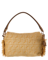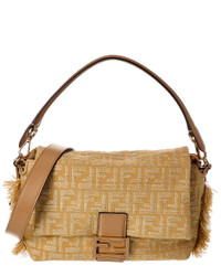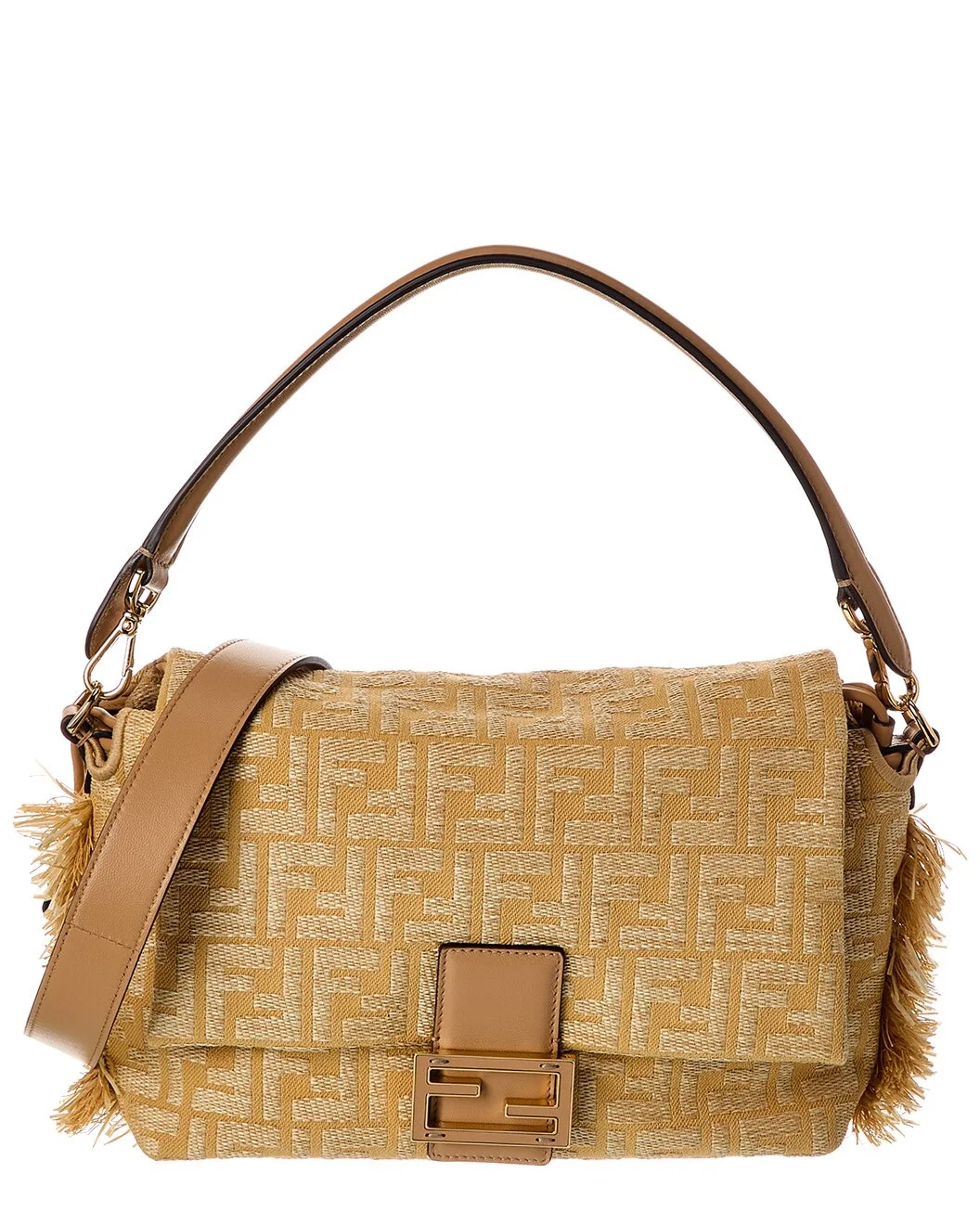 - About the brand: Innovative and elegant Italian luxury. - Made in Italy - Mamma Baguette Medium FF Jacquard Shoulder Bag in beige jacquard fabric and raffia and gold-tone hardware with fringe trim - Interior design details: drawstring closure, canvas interior - Measures 10.5in wide x 7in high x 3.3in deep - Shoulder strap drops 17in - Fold-over flap with magnetic closure - Please note: All measurements were taken by hand and are approximate; slight variations may occur. - Our products are 100% genuine. In some cases we purchase merchandise from trusted independent suppliers and not directly from the brand owner. In all cases we stand by the authenticity of every product sold on our site.