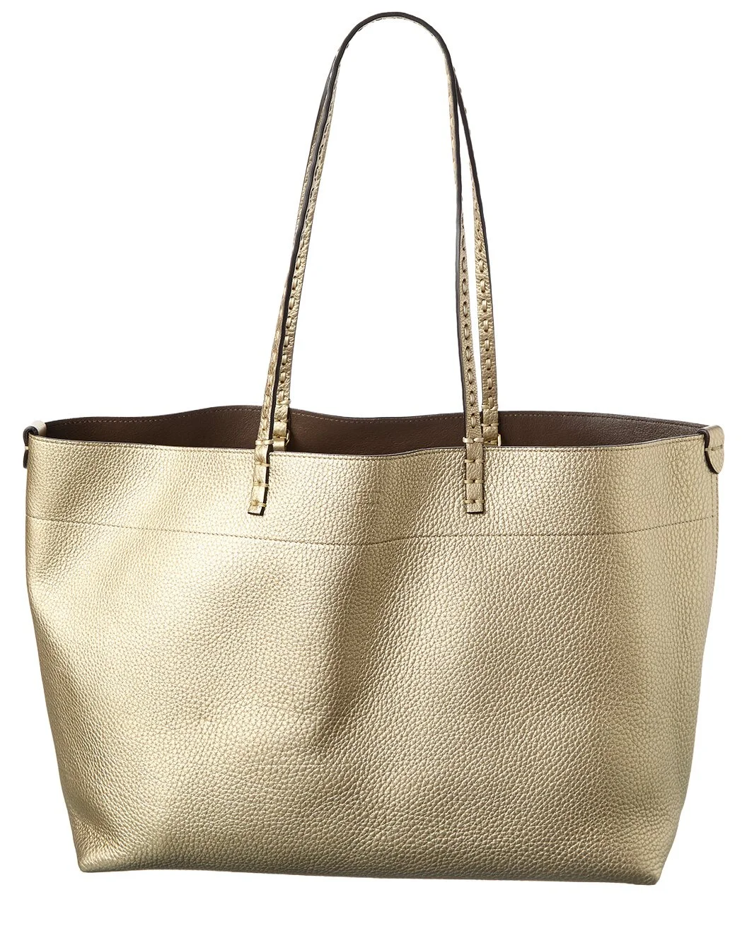 - About the brand: Innovative and elegant Italian luxury. - Made in Italy - Roll Medium Leather Tote in gold leather and gold-tone hardware - Interior design details: leather interior, zippered pocket - Measures 14in wide x 10.5in high x 6in deep - Shoulder straps drop 11in - Open top - Please note: All measurements were taken by hand and are approximate; slight variations may occur. - Our products are 100% genuine. In some cases we purchase merchandise from trusted independent suppliers and not directly from the brand owner. In all cases we stand by the authenticity of every product sold on our site.