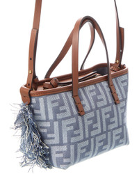- About the brand: Innovative and elegant Italian luxury. - Made in Italy - Roll Mini FF Denim & Leather Tote in blue FF denim-effect jacquard canvas and brown leather with gold-tone hardware and fringe trim - Interior design details: canvas interior - Measures 6.1in wide x 5.1in high x 4.3in deep - Top handles drop 4.5in - Adjustable and removable shoulder strap drops 21.25in - Zipper closure - Please note: All measurements were taken by hand and are approximate; slight variations may occur. - Our products are 100% genuine. In some cases we purchase merchandise from trusted independent suppliers and not directly from the brand owner. In all cases we stand by the authenticity of every product sold on our site.