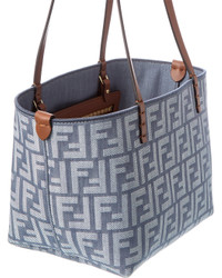 - About the brand: Innovative and elegant Italian luxury. - Made in Italy - Roll Small FF Denim & Leather Tote in blue FF denim-effect jacquard fabric and brown leather with gold-tone hardware - Interior design details: canvas interior, zippered pocket - Measures 9in wide x 7.5in high x 6in deep - Shoulder straps drop 13in - Open top - Please note: All measurements were taken by hand and are approximate; slight variations may occur. - Our products are 100% genuine. In some cases we purchase merchandise from trusted independent suppliers and not directly from the brand owner. In all cases we stand by the authenticity of every product sold on our site.