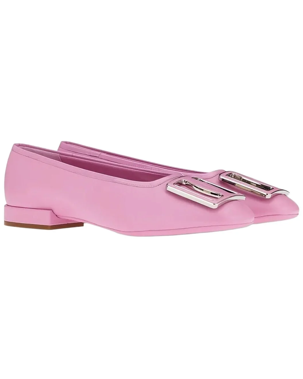 - About the brand: The Gancini, The Vara, and all the icons in-between. - Made in Italy - Brush Stroke Leather Ballet Fl in pink leather - Buckle closure - Leather sole - 4in heel - Our products are 100% genuine. In some cases we purchase merchandise from trusted independent suppliers and not directly from the brand owner. In all cases we stand by the authenticity of every product sold on our site.