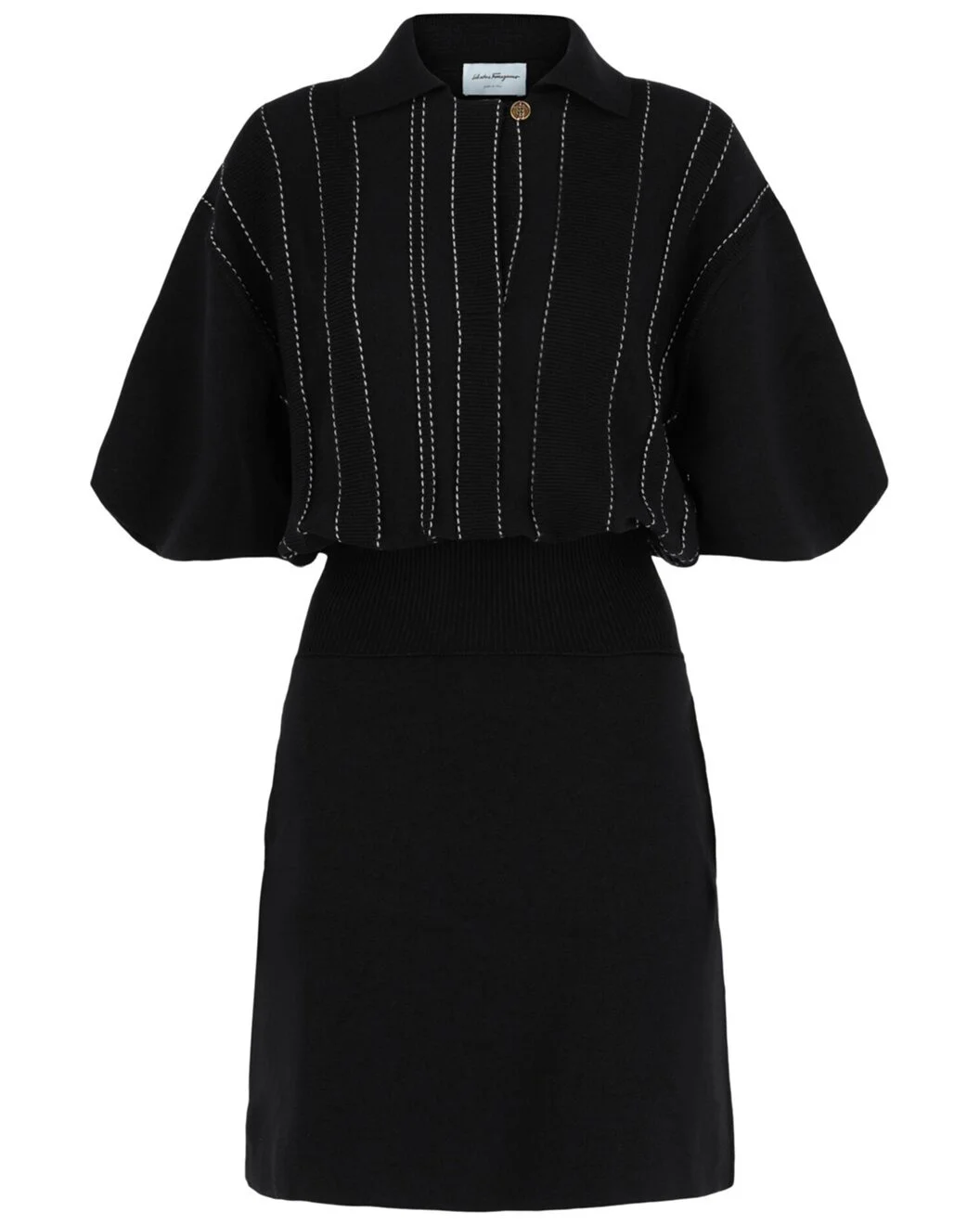 - About the brand: The Gancini, The Vara, and all the icons in-between. - Color/pattern: blue - Design details: Collared neckline; 1/2 sleeve; Two side slit pockets; Knee Length - Button closure - Main: 100% Wool - Dry clean only - Made in Italy - Our products are 100% genuine. In some cases we purchase merchandise from trusted independent suppliers and not directly from the brand owner. In all cases we stand by the authenticity of every product sold on our site.
