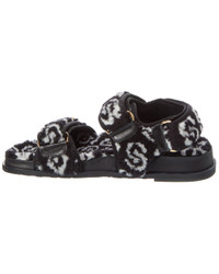 - About the brand: The Gancini, The Vara, and all the icons in-between. - Please note: Size selections are European. For US conversions, please reference size chart. - Made in Italy - Keita Sandal in black fur and gold-tone hardware with logo accents and grosgrain trim - Adjustable straps with Velcro® closures - Smooth leather insole - Man-made sole - Our products are 100% genuine. In some cases we purchase merchandise from trusted independent suppliers and not directly from the brand owner. In all cases we stand by the authenticity of every product sold on our site.