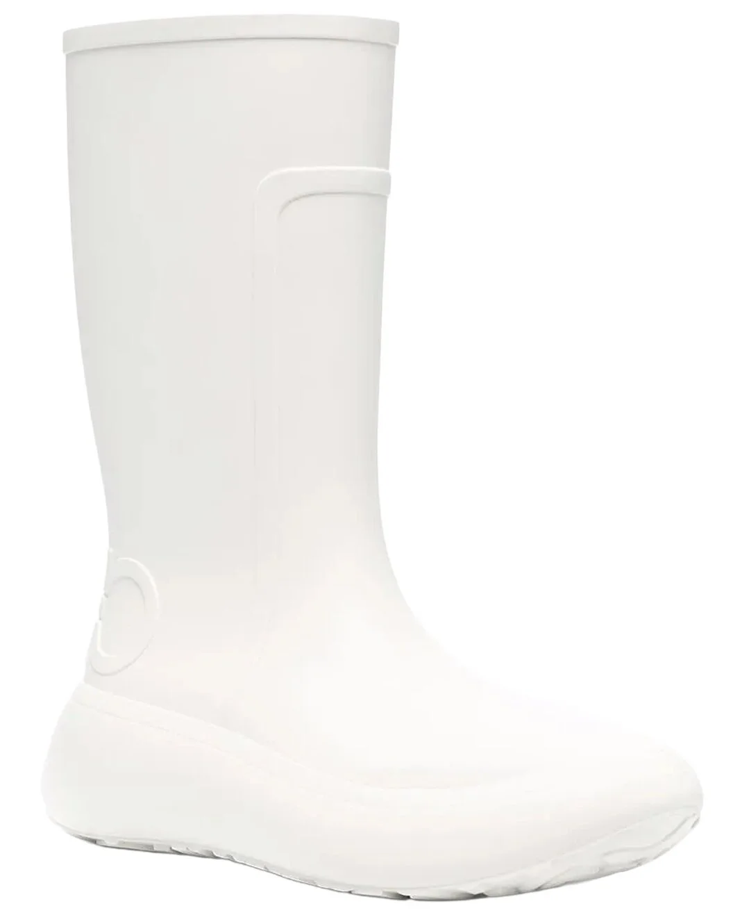 - About the brand: The Gancini, The Vara, and all the icons in-between. - Made in Italy - Logo Rubber Boot in white rubber with simple pattern detailing on the rear and side - Rubber sole - 1.5in heel - The Boot Size Guide - Our products are 100% genuine. In some cases we purchase merchandise from trusted independent suppliers and not directly from the brand owner. In all cases we stand by the authenticity of every product sold on our site.